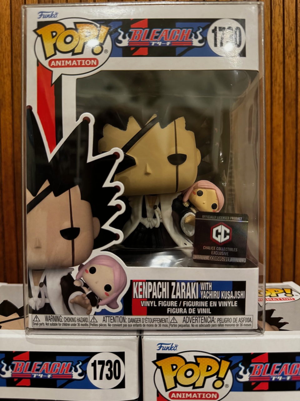 Okay, so I heard that Funko might be making this Pop figure. The anticipation was excruciating! When it finally arrived at my local Chalice Collectible store, I ran straight down there to see it IRL in real life! So there I am, box in hand. And the first thing that hits me is just how right it looks. Kenpachi’s whole deal — the height, the wild hair, the scars, the sheer unhinged energy of the man — is all there. And then your eyes travel up to that tiny passenger on his shoulder, pink hair flying, expression absolutely delighted with herself, and I just… lost it a little. I immediately started making sounds that no human language has proper words for.
